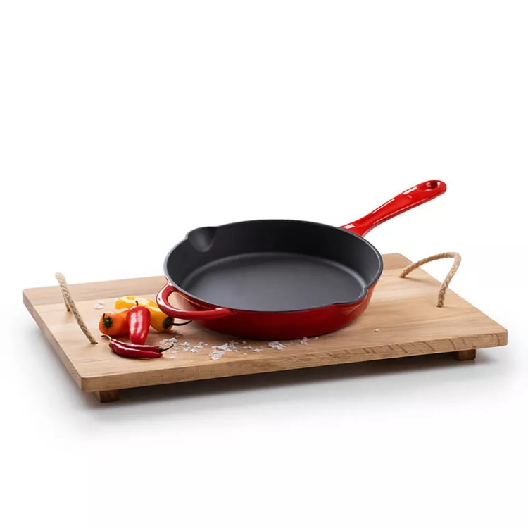 Available for full OEM/ODM partnership. We support custom exterior enamel colors and private label branding on the handle or the base of the skillet.